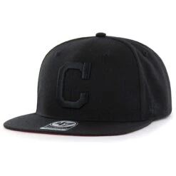 Men’s Cleveland Guardians ’47 Black On Black Sure Shot Captain Snapback Hat