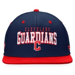 Men’s Cleveland Guardians Fanatics Branded Navy/Red Iconic Lock Up Snapback Hat