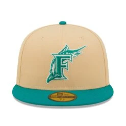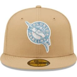 Men’s Florida Marlins New Era Tan Inaugural Season Sky Blue Undervisor 59FIFTY Fitted Hat
