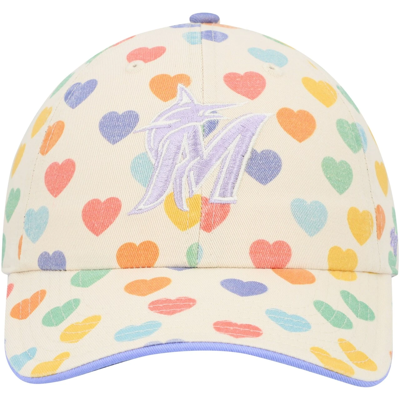 Show Miami Marlins spirit in a colorful way with this Delight Clean Up hat from ’47. It features the Miami Marlins logo in raised embroidery that matches the vibrant pattern of hearts all over. An adjustable closure also provides a customized fit for the most comfortable wearing all day.