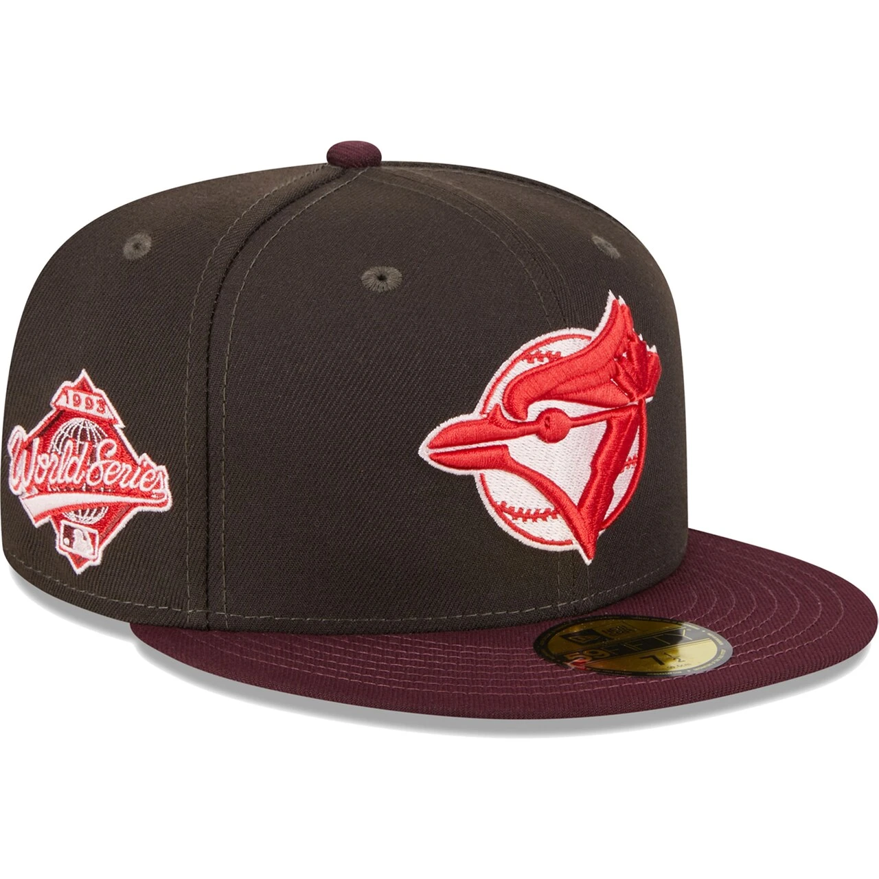 Add a tasteful piece of Toronto Blue Jays gear to your collection by picking up this Chocolate Strawberry 59FIFTY hat from New Era. It features the team’s logo embroidered on the front and a celebratory patch on the right side. The red undervisor on this fitted cap adds a pop of color, giving it a unique look that is perfect to go along with any Toronto Blue Jays game day outfit.